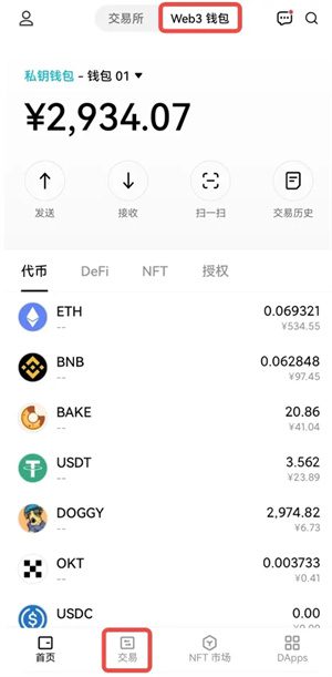 通过Web3钱包,您可以参与各公链的DAPP,此处以OKC上的DeFi项目为例。