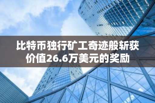 比特币独行矿工奇迹般斩获价值26.6万美元的奖励