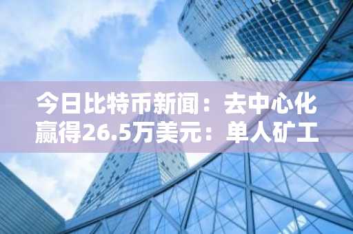 今日比特币新闻:去中心化赢得26.5万美元:单人矿工比特币大获全胜