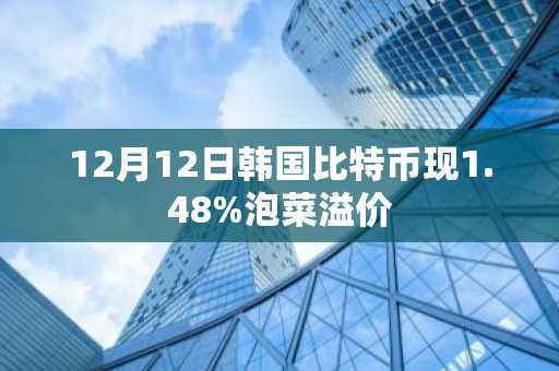 12月12日韩国时间零点,比特币在Upbit交易所的交易价格为1334.9万韩元,较前日下跌2.34%。同期全球交易所币安上的比特币报价为1315.5万韩元,两地价差达19.4万韩元,形成1.48%的泡菜溢价。