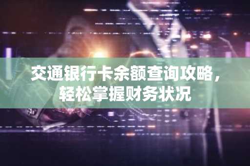 随着互联网金融的快速发展,银行卡已经成为人们日常生活中不可或缺的支付工具,交通银行卡作为我国知名的银行卡品牌,为广大持卡人提供了便捷的金融服务,本文将从财经角度出发,为大家详细介绍交通银行卡余额查询的攻略,帮助大家轻松掌握个人财务状况。