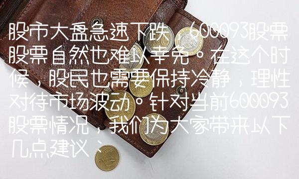 股市大盘急速下跌,600093股票股票自然也难以幸免。在这个时候,股民也需要保持冷静,理性对待市场波动。针对当前600093股票情况,我们为大家带来以下几点建议: