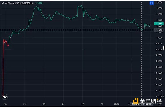 ACE的合约多空比自2023年12.27日以后始终保持在2.9以上,近24小时在3以上;大账户多空比近7日保持大于1.13