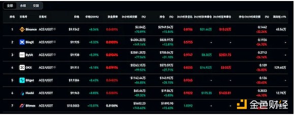 近24小时ACE在币安的资金费率在0.04-0.08%之间,资金费率偏高,但近期**场资金正费率现象较为明显,热度不错的**资金费率大多在0.04%以上,代表了近期整个市场看涨的情绪。