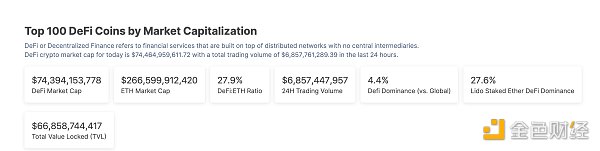 1、DeFi**总市值:743.94亿美元