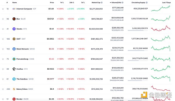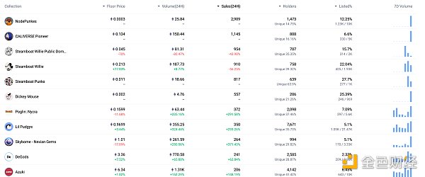 24小时NFT交易量、交易量前十项目 数据来源:Coinmarketcap