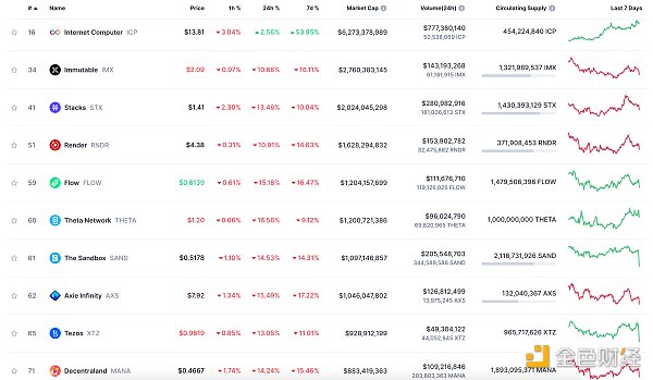 NFT总市值、市值排名前十项目 数据来源:Coinmarketcap