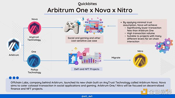 Nitro是One的技术栈升级。通过客户端软件的基础层直接编译了Geth的核心,Geth是主流的以太坊客户端,从而实现更高的以太坊兼容性。关于Arbitrum Nitro/One/Nova的区别,之前有单独讲,此处不赘述。