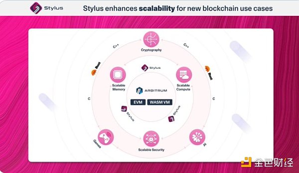 Stylus是Arbitrum开发的支持多语言构建应用程序的开源SDK。这是一种实现EVM 兼容性的产品。简言之,开发人员在Arbitrum上既能使用传统Solidity语言,又能使用WASM兼容的语言,如Rust、C和C 等来构建应用程序。