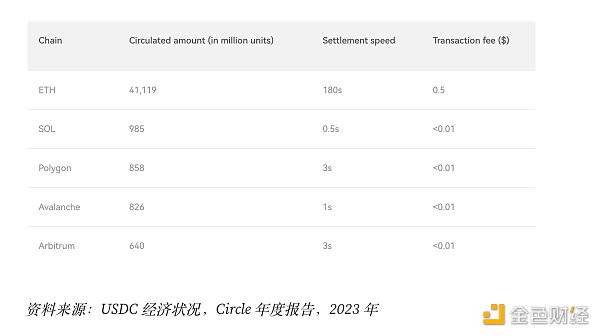 USDC 已在超过 15 个公共区块链上发行,其总价值锁定 (TVL) 排名**的是以太坊、Solana 和 Polygon。USDC正在积极寻求扩展其应用场景,主要集中在支付,尤其是跨境支付。