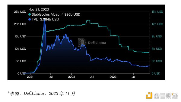 从2021年的牛市到2023年的熊市,加密货币市场发生了重大变化。总市值从3万亿美元下降到1万亿美元,但稳定币市值只下降了30%。