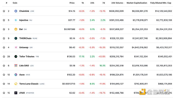 过去24小时去**化交易所的交易量 数据来源:coingecko