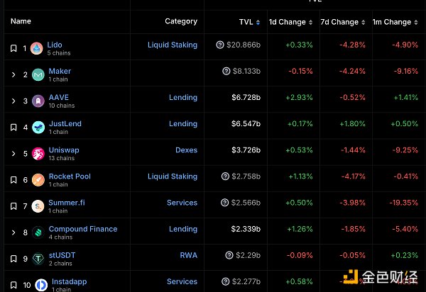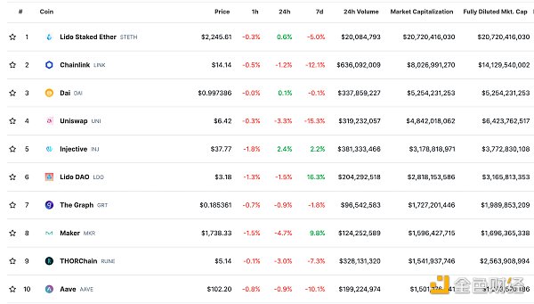 DeFi总市值及前十** 数据来源:coingecko