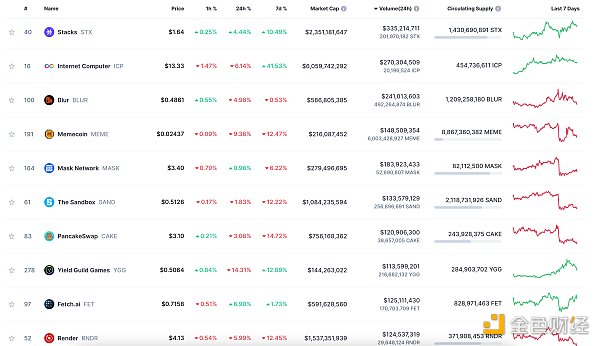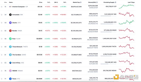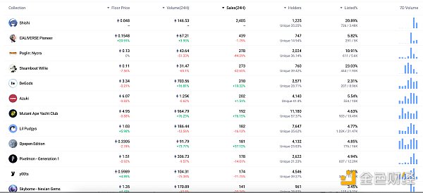 24小时NFT交易量、交易量前十项目 数据来源:Coinmarketcap