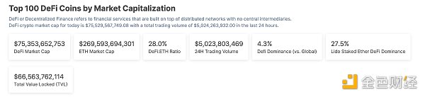 1、DeFi**总市值:753.53亿美元