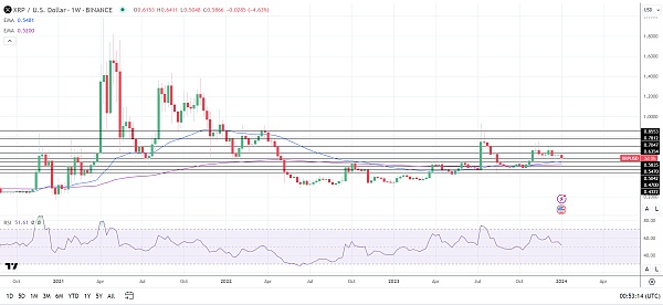 14周期每日RSI为39.60,表明瑞波币在进入超卖区域之前跌破200日均线。