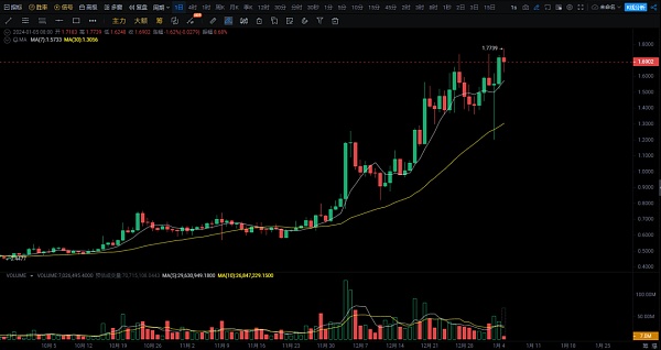 STX价格盘中上涨1.12%。目前 Stacks 的价格预测情绪看涨,恐惧与贪婪指数值为 68(贪婪)。Stacks 的流通供应量为 14.3 亿个 STX,**供应量为 18.2 亿个 STX。去年年供应通胀率为6.35%,创造了8544万个STX。