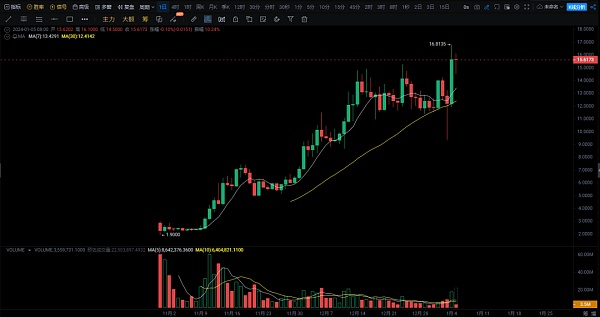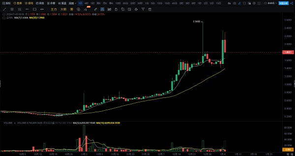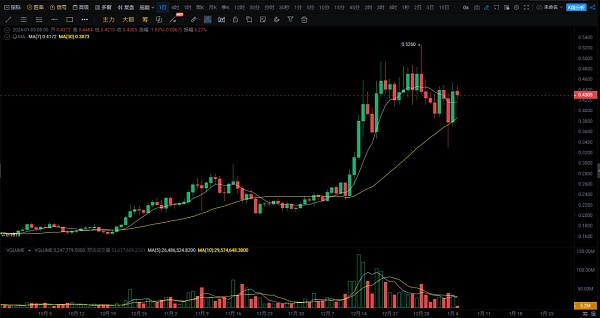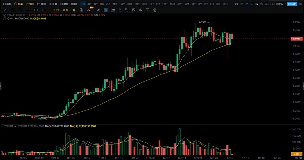 FET 过去 24 小时内上涨 12.53%,交易量为 1.7356 亿美元。其市值为 4.9214 亿美元,市场主导地位为 0.03%。