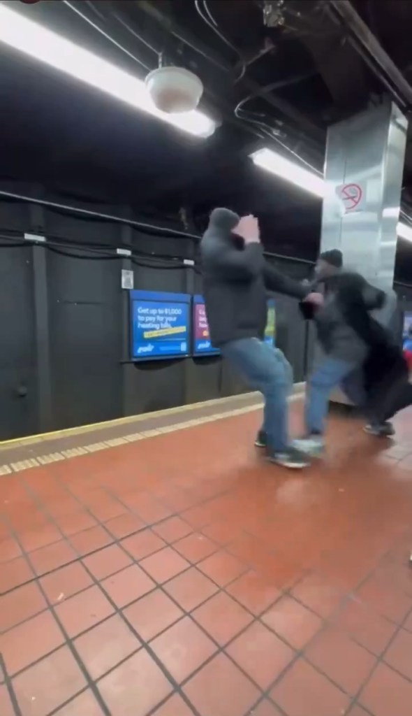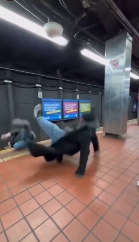 当火车驶入车站时,嫌疑人对另一名男子打了两拳,将他撞倒在铁轨上。