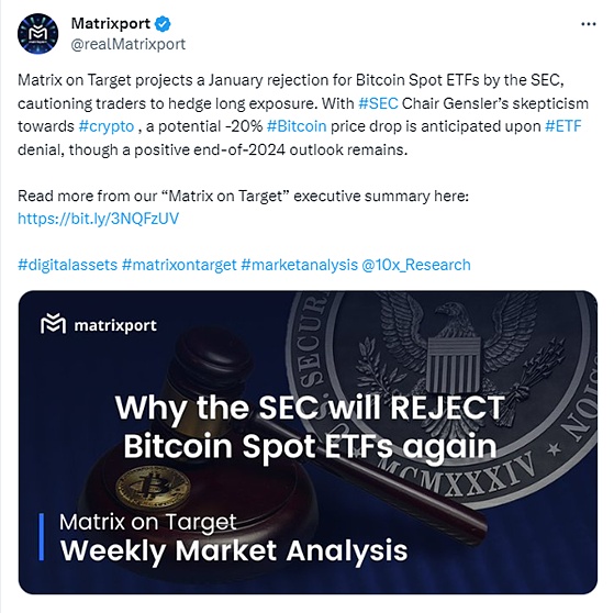 新加坡数字资产公司 Matrixport 一则关于SEC 将于 1 月份拒绝比特币现货 ETF,并警告交易者对冲多头风险的报道,被认为是做空的消息源头。