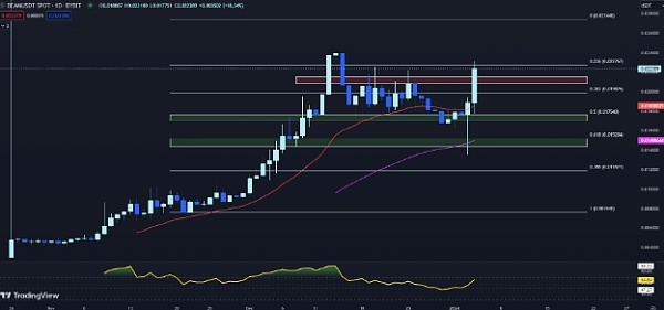 经过昨天一段时间的下跌以及更广泛的加密货币市场抛售之后,BEAM 价格已显示出复苏的迹象。BEAM 已从 50 日均线反弹,并成功收于当前区间内,涨幅接近 7%。BEAM 正是利用这一势头,目前试图重新夺回其直接阻力位,截至目前,其交易价格为 0.022389 美元,上涨了 18.54%。