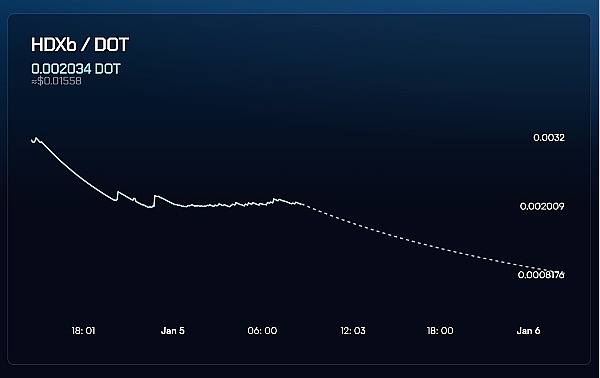 据悉,HydraDX 于昨晚 10:22 开始启动发售第二批 HDXb 债券,目前正在火热进行中。截止发稿时(北京时间1月5日16:35),已发售了 4,467,019 张 HDXb 债券,筹集了 9,201.99 DOT。