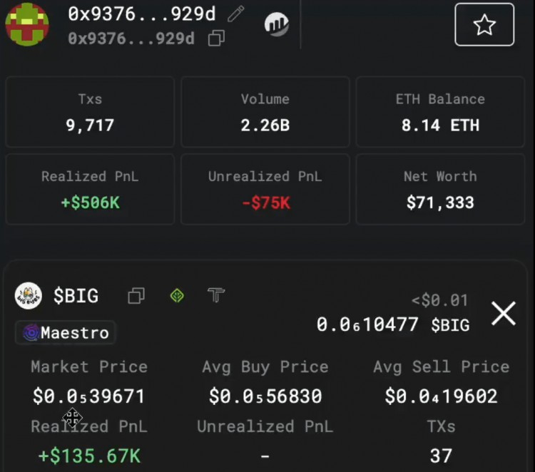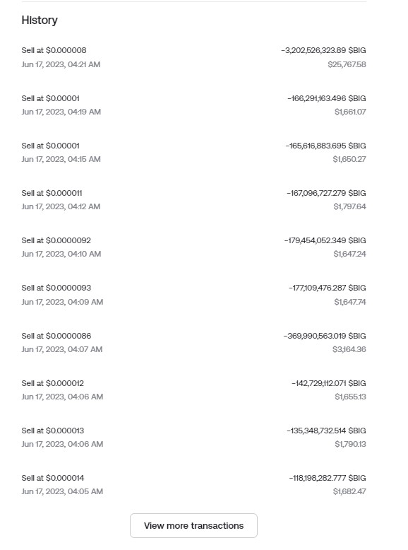 这是一个明智的举动,因为 $BIG 很快就首先抛售了。