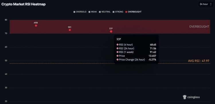 与此同时,互联网计算机协议显示出与 SEI 类似的行为,每个时间帧的 RSI 减少 1。
