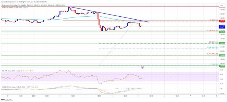 ETH/美元小时图上还形成了一条主要看跌趋势线,阻力位在 2,280 美元附近。