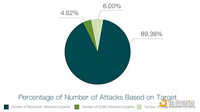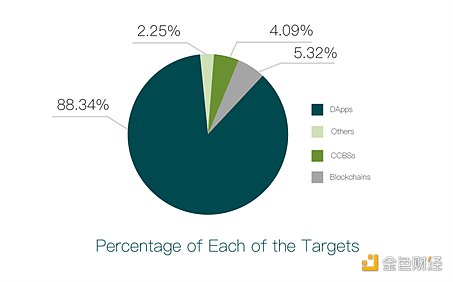 由上图所示,黑客攻击dApp、CCBS和区块链的事件占比分别为89.38%(387起)、4.62%(20)和6%(26起)。