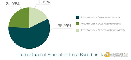 黑客对dApp、CCBS和区块链攻击所导致的资产损失占比分别为58.95%、24.03%和17.02%,具体的损失金额分别为6.94亿美元、2.83亿美元和2亿美元。