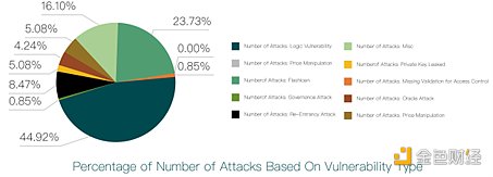 我们研究了118起涉及合约受到攻击的安全事件,得到下列比例图: