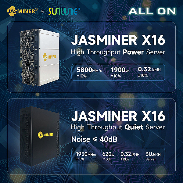 在CES 2024展会上,SUNLUNE将为大家带来一系列精彩活动,包括**技术分享和JASMINER X16系列产品展示。JASMINER X16系列是SUNLUNE公司推出的**一代Crypto领域算力产品,采用存算一体核心芯片技术,结合自身低功耗的优势,除了可以面向专业场地外,还可以进入家庭,进一步推动全球消费者电子产品“去**化”。JASMINER X16-Q(高通量静音型服务器)额定算力为1950MH/s±10%,功耗**620W±10%,能效比为**的0.32J/MH±10%,同时具备全新升级的8G(DAG)存储,支持ETCHASH与ETHASH算法,形态为3U标准规格尺寸,运行噪音**40dB±10%,能够满足家庭、IDC机房等环境的各种复杂计算需求。JASMINER X16-P(高通量强力型服务器)额定算力高达5800MH/s,功耗为1900W±10%,能效比同样为**的0.32J/MH±10%,其适用于更加复杂的网络计算,可以为用户提供更强大的Crypto算力支撑。