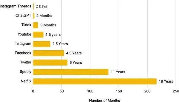 图 1:ChatGPT 是增长最快的应用程序之一,在发布两个月后就获得了 1 亿用户