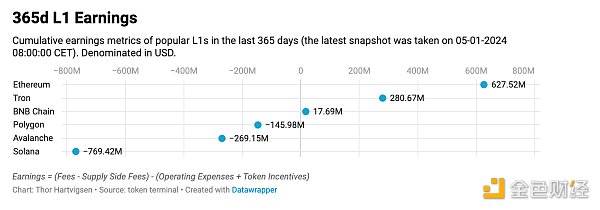 严格来看财务报告,以太坊是少数几个实现正收益的主要区块链之一。