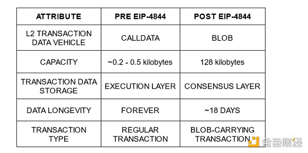 然而,使用携带 blob 的交易将数据发布到以太坊会显著**gas费用,因为只有指向包含 L2 交易的 blob 的引用可供执行层使用,这意味着 blob 数据不能被重新执行。blob 中包含的所有数据都存储在共识层(信标节点)中,时间有限。更便宜的交易的一个小权衡是增加了块大小,需要节点有更大的存储容量。