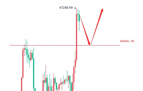 比特币强势拉升形成多空力量转换, 在试探底部支撑43000一线之后,强势拉升4000点空间。秦川能预测试探支撑后反弹,但涨幅空间确实没有料到,自己本人也是踏空的一个状态。日线上的走势仿佛有一双大手总是在关键时刻去拉伸价格,在涨幅上已经超出预期和技术面。短线四小时上价格触底反弹之后布林开口,上方45800形成新的顶底转换支撑,四小时K线上三针探顶短线高位盘整,一小时上价格支撑在45500一线,一小时价格开始**走弱,macd空头收量,整体大盘控盘情况太严重。综合上述建议顺势而做多为主。