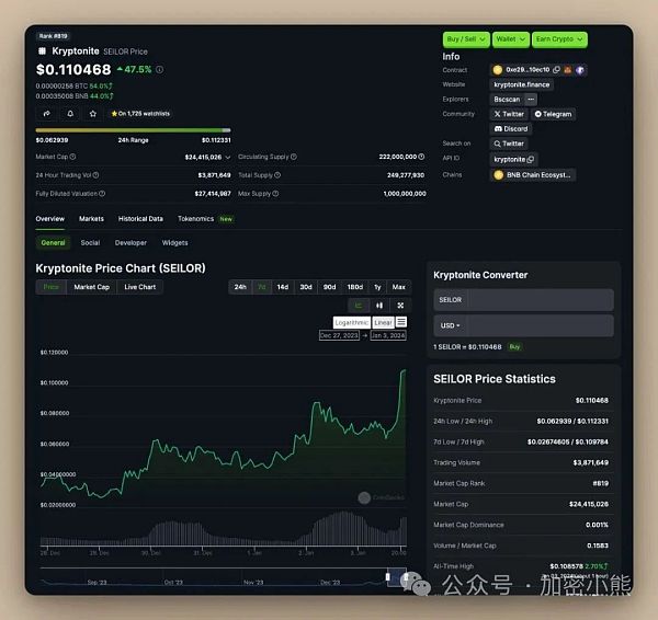 • 市值:260 万美元 • 价格:0.0026 美元 • 合约地址:sei1ta5rkr6y2qlkj7px8w2cvear7m2822q4f4ea0m/sensei