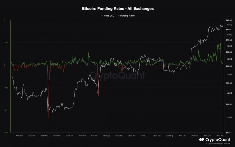 该图表显示了比特币融资利率指标,这是未来情绪分析的关键指标之一。