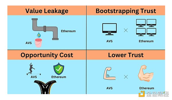 使用 AVS 而不是以太坊的主链安全来保护第 2 层存在一些限制。