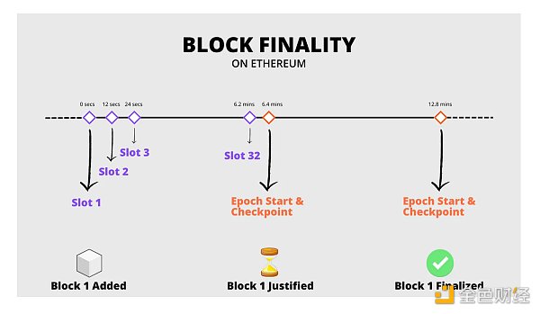 为了在以太坊上**建立一个区块,它必须经过合理化和**确定。当至少三分之二的验证者投票在检查点包含特定区块时,就会出现合理性。当下一个**中的后续检查点也被证明合理时,就实现了**性,即块变得不可逆转的阶段。因此,包含交易的区块需要大约 12.8 分钟(两个**)才能完成并**添加到区块链中。虽然这 12.8 分钟的延迟通过在**存储区块之前提供缓冲区来增强安全性,但它可能会限制某些以太坊 DApp 的性能,例如高频交易平台,这些平台将受益于即时链上结算和**确定。