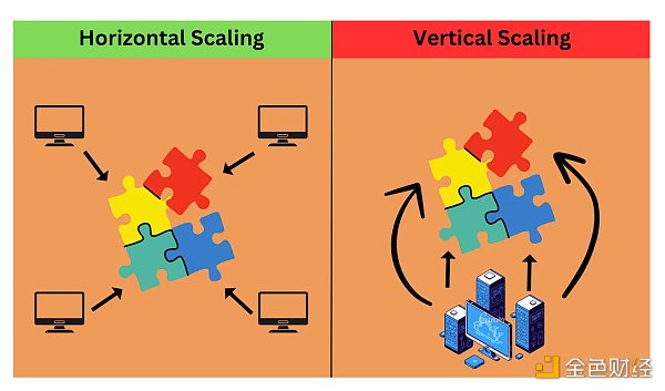 此外,Eigenlayer 正在实施措施,确保可以使用超大规模 AVS 的水平可扩展性来实现工作负载分配而不是仅仅依靠垂直缩放。水平扩展涉及将计算分布到各个网络节点,每个节点处理一部分工作负载。相比之下,垂直扩展增强了单个节点执行多个复杂操作的能力。水平扩展不需要单个节点满足复杂任务的高技术标准,从而促进去**化。相反,节点可以根据其能力管理部分计算。这可以防止强大的集中式验证器在太多模块中分摊其验证成本。通过聚合多个节点的性能,水平扩展可以维持较高的系统输出。