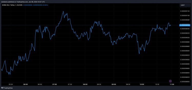 According to information provided by CoinMarketCap, the value of Shiba Inu is currently trading at approximately $0.000008907, representing a decrease of more than 5% in the preceding twenty-four hours.