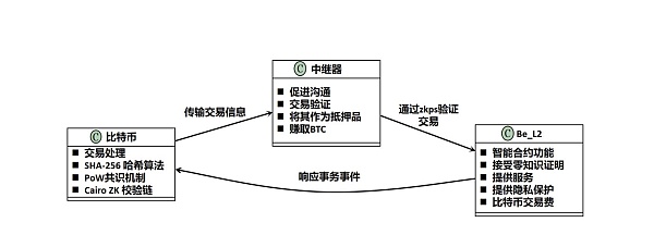 此外,由于比特币主网不具备智能合约功能且交易确认**,所以对类似 DeFi 抵押借贷或者在 L1/L2 之间直接进行交易的行为可能会因为主网的不同步而出现问题。因此,BeL2 设计了第三方「中继者」的角色来协助执行交易。