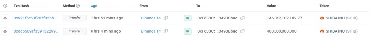 本次交易期间,共有 5,463.4 亿个 SHIB 转出平台,其中两次转出总计近 500 万美元(按当前资产价格计算)。