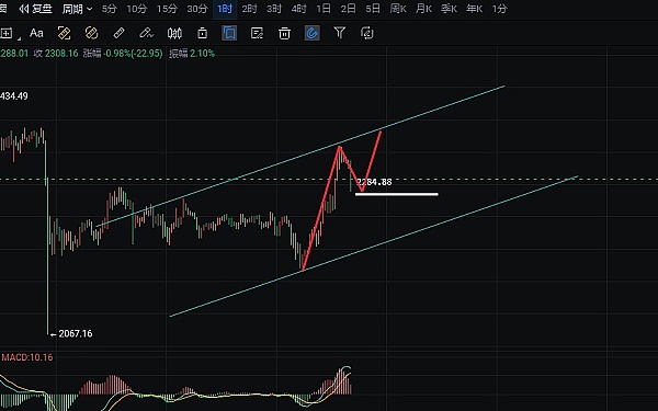 回踩2265-2285附近分批多,目标2330-2350,破位看2370附近