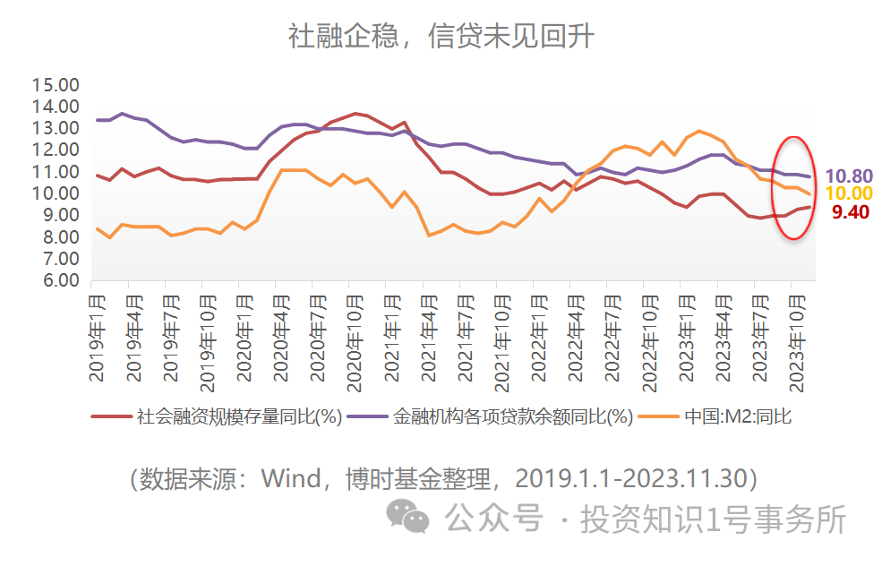 首先来看货币政策指标。目前,社融存量同比增速已见底企稳,但金融机构各项**余额同比、M2同比增速仍较前期收窄,主要受地产情绪低迷、居民中长期**偏弱拖累。