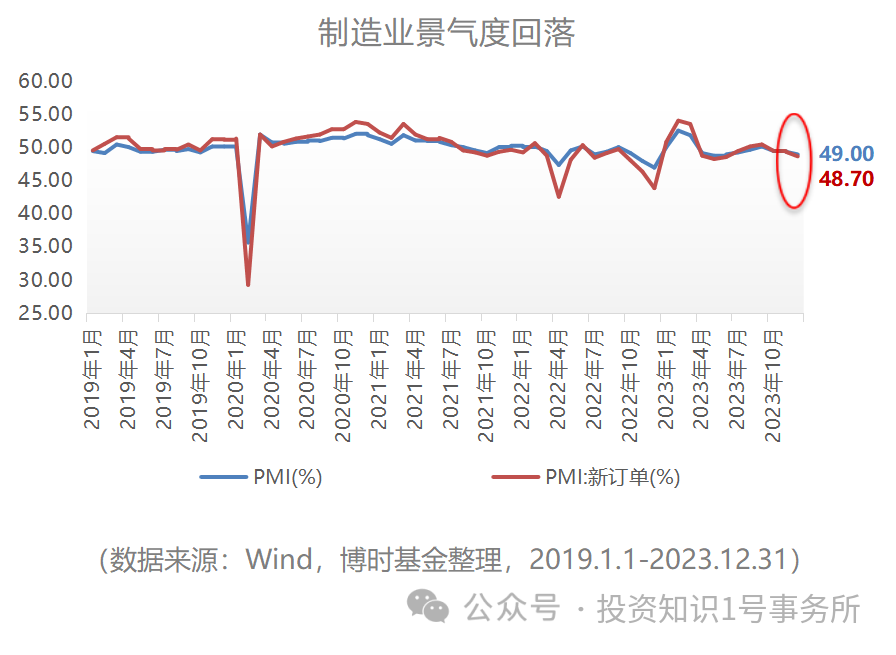 第三个,制造业景气度指标。近日公布的12月PMI数据出现回落,制造业PMI49%,新订单指数48.7%,均低于荣枯线。尤其是订单类指数偏低,反映出需求不足问题依然显著,这也是带来本轮市场预期波动背后的一大原因。