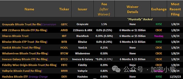 昨晚21:00(美东时间1月8日8:00),是SEC要求各**特币现货ETF申请方提交更新文件的**期限。除了Hashdex外,包括灰度(Grayscale)、Ark/21Shares、贝莱德(Blackrock)、BitWise、VanEck、WisdomTree、Invesco、富达(Fidelity)、Valkyrie、Franklin等所有ETF申请方均已提交更新版的S-1文件(灰度的情况是S-3文件)。