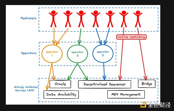 其中的核心是“再质押”的概念。通过重新质押,EigenLayer 可以将以太坊质押的 ETH 和验证器集用于其他服务和网络。